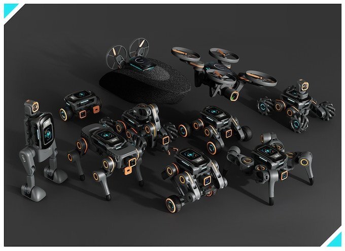 유갓(UGOT)은 크라우드 펀딩으로 제공되는 모듈식 키트에는 핵심이 되는 기본 키트와 현재까지 개발된 모듈이 포함된 풀 키트 두가지로 제공될 예정입니다. 이후 휴머로이드 로봇, 무인 선박 및 드론 같은 다른 유형의 로봇을 만들 수 있는 추가적인 키트를 개발하여 제공할 예정입니다.
