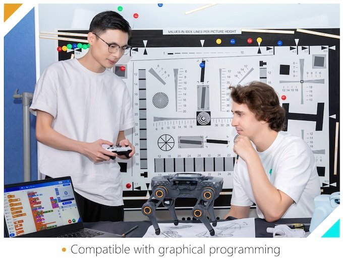 모듈형태로 7가지 이상의 로봇을 조립할 수 있으며, 3축, 자이로, 지자기, TOF 센서 및 카메라를 연계하여 다양한 프로그래밍이 가능합니다.