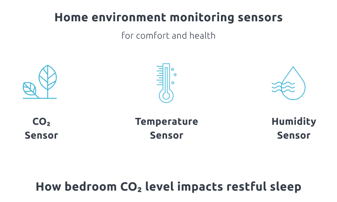 잠 잘 때 온도와 습도를 측정해 주는 장치를 추가했습니다. 특히, 이산화탄소(CO2)농도는 수면의 질에 중요하다고 합니다. 취침중에 환기가 되도록 만드는 것이 중요 합니다.