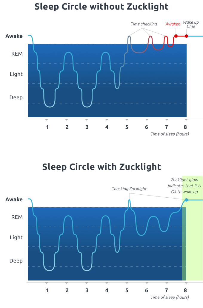 Concept by Mark Zuckerberg. Sleep box that emits faint light to let you know whether it’s okay time to get up or go back to sleep