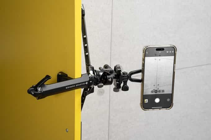 Arca-Swiss 호환 휴대폰 클립을 사용하여 속이 빈 볼 헤드에 휴대폰을 장착할 수 있습니다.