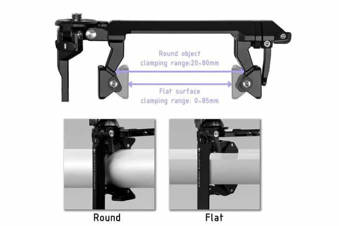 · 접는 클램프는 둥근 물체에 고정할 수 있습니다.