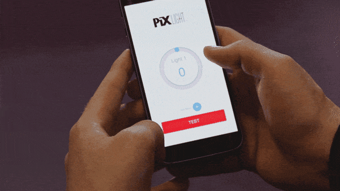 픽스라이트(PiXLIGHT)는 스마트폰과 블루투스로 연결됩니다. 앱은 안드로이드의 플레이스토어와 애플 앱스토어에서 다운로드 받을 수 있습니다.