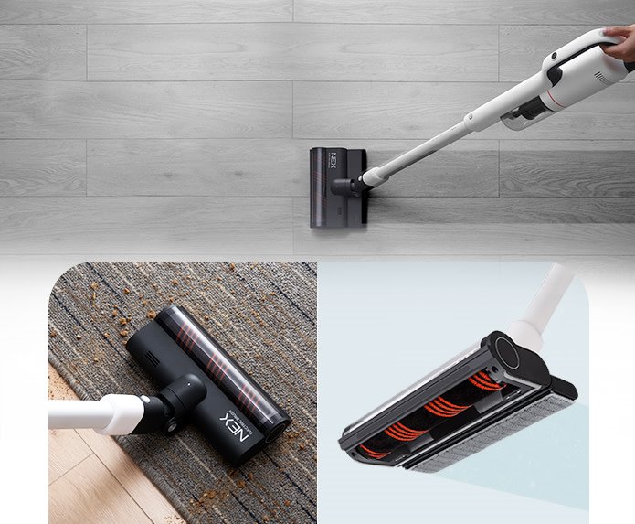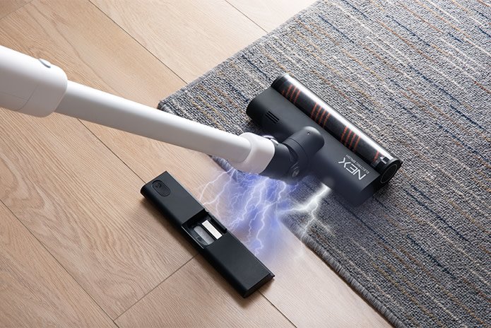 넥스 스톰(NEX Storm)은 1.5kg의 가벼운 무게로 어르신과 아이들도 들 수 있으며, 어디든 청소가 가능하여 청소를 하고 싶게 만들어 줍니다. 여기에 물걸레를 포함시켜 얼룩 제거도 가능해 졌습니다.