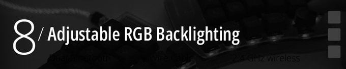 다양한 환경에 어울리도록 풀컬러 RGB 백라이트를 이용한 조명효과를 선택할 수 있습니다. 반응형 모드를 통해 심야 작업에도 은은한 빛을 더할 수 있습니다.
