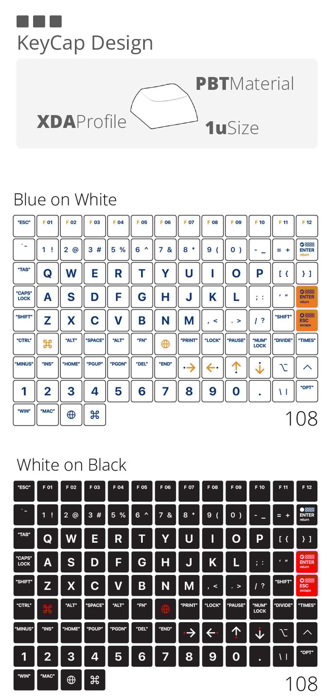 윙45(Wing45)의 키캡은 다음과 같이 디자인 되어 있으며, 색상은 크라우드 펀딩 종료 후 배송 주소 확인시 원하는 색상을 선택할 수 있습니다.
