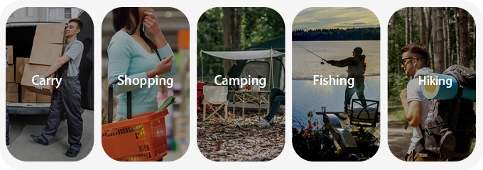 야외 활동은 자연과 교감하거나, 액티비티 중심으로 재미를 느끼고, 새로운 경험과 추억을 만들며 일상에서 벗어나 활력을 느낄 수 있습니다. 하지만 기온 변화와 날씨에 대비한 의류, 식수와 식량, 안전 장비, 촬영 도구 등 다양한 물품이 필요해 짐이 점점 많아지게 됩니다. 짐의 부피와 무게는 신체적 부담을 증가시키므로, 체력을 아끼기 위해 배낭, 캐리어, 웨건과 같은 이동 장치가 필수적입니다.