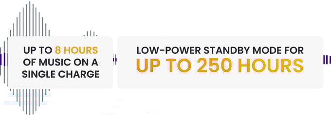 사용하지 않을 때는 최대 250시간 동안 저전력 대기 모드를 유지하여, 잦은 충전 없이도 며칠 동안 자유롭게 사용할 수 있습니다.
