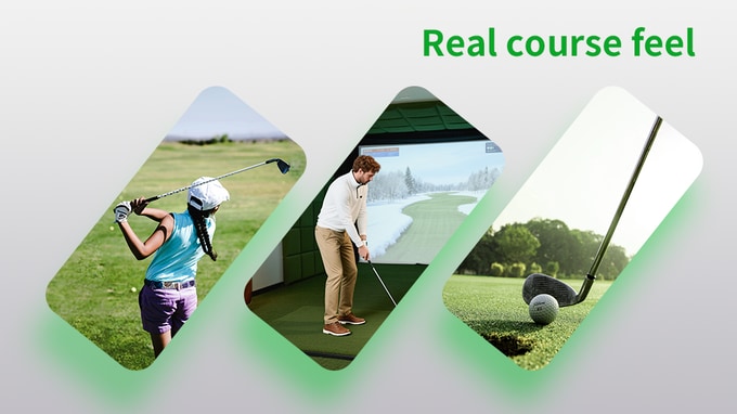 단 몇 미터의 공간만 있으면 가정의 거실이나, 사무실 등 어디서든 실제 필드와 같은 몰입감 있는 연습을 즐길 수 있습니다.