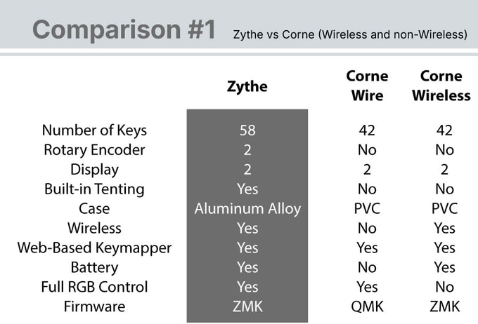 자이트(Zythe)와 다른 브랜드의 컴팩트한 크기의 분리형 유무선 키보드를 비교한 내용은 다음과 같습니다.