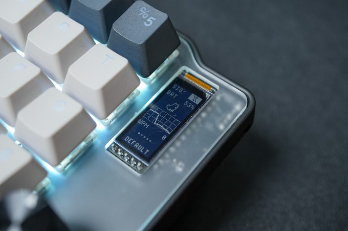 좌우에 각각 선명한 OLED 스크린이 탑재되어 실시간 상태를 한눈에 확인할 수 있습니다. 배터리 잔량이나 분당 타수(WPM)는 물론, 현재 사용 중인 레이어까지 즉시 파악할 수 있어 작업 효율을 높입니다.