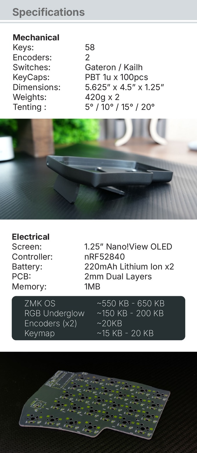 오픈 소스 컬럼 스태거(column-staggered) 키보드에서 영감을 받은 자이트(Zythe)는 키 배열을 개선하고 무선 기능을 강화했습니다. 블루투스 5.0과 양쪽에 탑재된 충전식 배터리로 자유로운 사용이 가능하며, OLED 디스플레이와 RGB 언더글로우로 시각적인 만족도를 더합니다.
