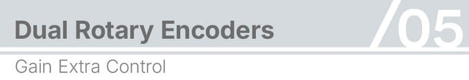 자이트(Zythe)에 듀얼 로터리 엔코더를 추가하여 더 정밀한 제어가 가능합니다. 이 엔코더는 볼륨 조절이나 영상 재생 제어 같은 기본적인 기능부터 시작해, 디자인, 영상 편집, 사진 작업 시 복잡한 매크로 기능을 간편하게 실행할 수 있는 매크로 패드 역할까지 수행합니다.