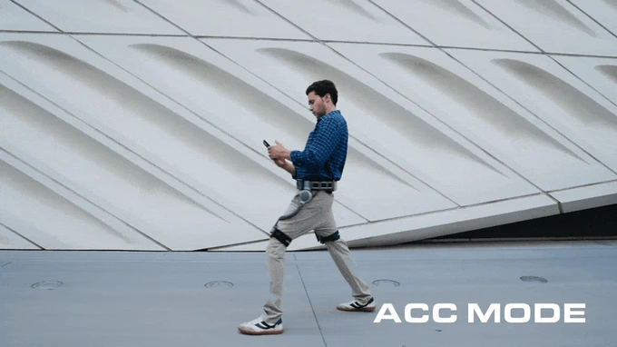ACC 모드는 외골격이 사용자의 걸음을 능동적으로 안내하여 최대 추진력을 제공합니다. 사용자의 노력이나 의식 없이도 장거리 이동이나 급경사 구간에서 매우 부드럽고 안정적인 움직임을 보장하여 피로를 최소화합니다.