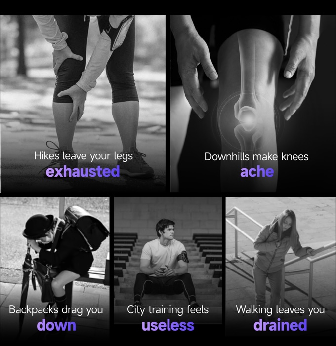 군용 MOLLE 시스템에서 영감을 받은 모듈형 벨트를 핵심으로 하며, 여기에 힙 모듈을 장착해 강력한 추진력으로 걷기, 달리기, 등반을 보조하고, 무릎 모듈로 교체하여 장거리 활동 시 관절 보호와 피로를 효과적으로 줄여줍니다.