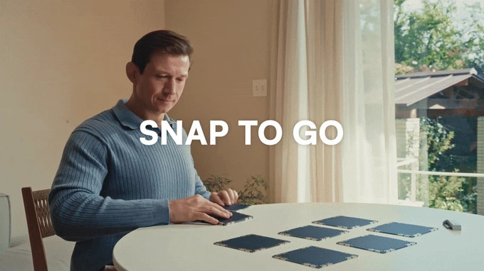 3. 강력한 휴대성(SNAP TO GO): 충전이 끝나면 패널을 간단히 분리하여 휴대할 수 있습니다. 각 패널은 최소한의 부피와 무게로 설계되어, 사용자가 필요한 전력을 항상 가지고 다닐 수 있도록 지원 합니다.