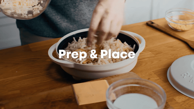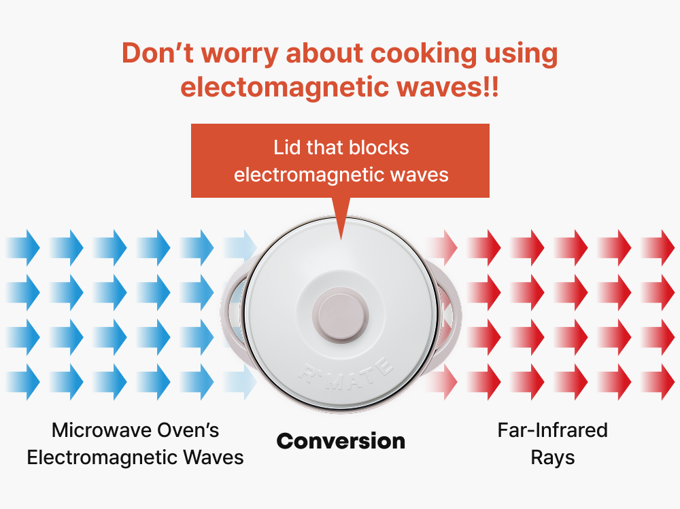 또 다른 혁신 기술이 적용된 뚜껑은 전자기파가 음식에 직접 도달하는 것을 방지합니다. 발열판에서 만들어진 열이 음식을 조리하는데 영향을 주게 되어, 소형 오븐과 유사한 조리가 가능합니다.