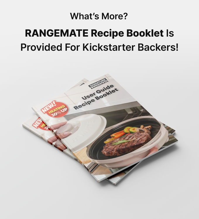 사용자 가이드와 레시피 소책자를 제공하여 렌지메이트(RANGEMATE) 시그니처의 활용도를 높일 수 있습니다. 킥스타터 후원자들에게 요리책을 제공하여 다양한 전문 요리에 도전해 볼 수 있도록 지원합니다.