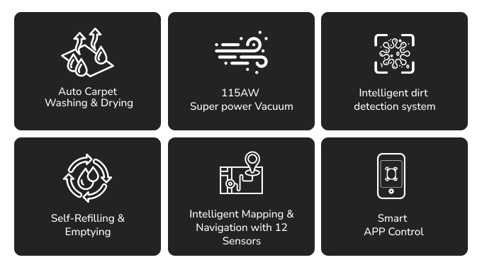 ✅ 카펫 전용으로 진공청소, 세탁, 건조의 3-in-1 기능의 로봇청소기