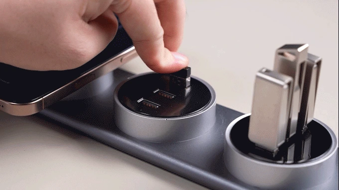 토벤원(TobenONE) 모듈형 멀티 허브는 하나의 지능형 마그네틱 생태계 내에서 충전 뿐 아니라 데이터 연결도 가능합니다. 여러개의 부피 큰 어댑터를 단 하나의 간소화된 허브로 대체하여 케이블 혼란을 줄이고 전력 사용을 단순화합니다.