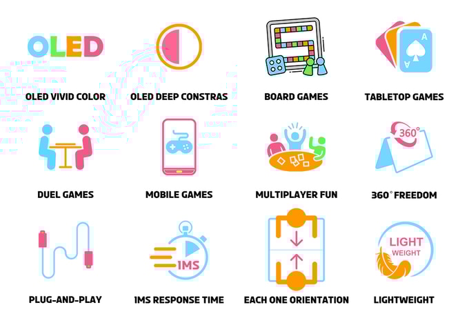 듀오원(DUOONE)은 보드게임 처럼 함께하는 게이밍을 염두해 두고 만든 제품으로 DuelPlay, Head-to-Head, 소셜 게이밍을 포함한 다양한 게임을 지원합니다. OLED 듀얼 스크린 및 다중 플랫폼 호환성을 바탕으로 보드게임부터 모바일, 멀티미디어까지 지원할 수 있습니다.