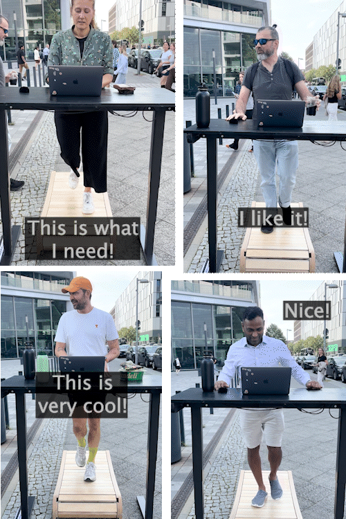 발에 가장 안정적으로 닿는 최저 부분의 높이가 14cm에 불과하여 대부분의 일반 스탠딩 데스크와 별도 장비 없이 완벽하게 호환됩니다. 사용자의 스탠딩 책상이 일반적으로 사용하는 높이보다 14cm 더 올라갈 수 있다면 편안하게 사용할 수 있습니다.