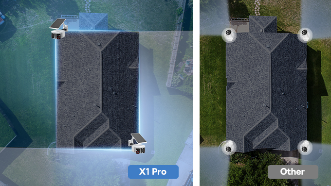 가정에서 앞마당과 뒷마당을 동시에 모니터링 할 때에 X1 Pro은 두대의 카메라면 주택 전체를 빈틈없이 보호하고 종합적인 보안이 가능합니다.