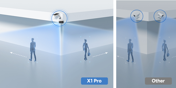 다른 보안 카메라는 구석을 가로지를 때 시야를 놓칠 수 있지만, X1 Pro는 듀얼 트래킹 기술을 통해 감시의 끊김 없이 구석까지 완벽하게 커버하여 연속적인 보안이 가능합니다.