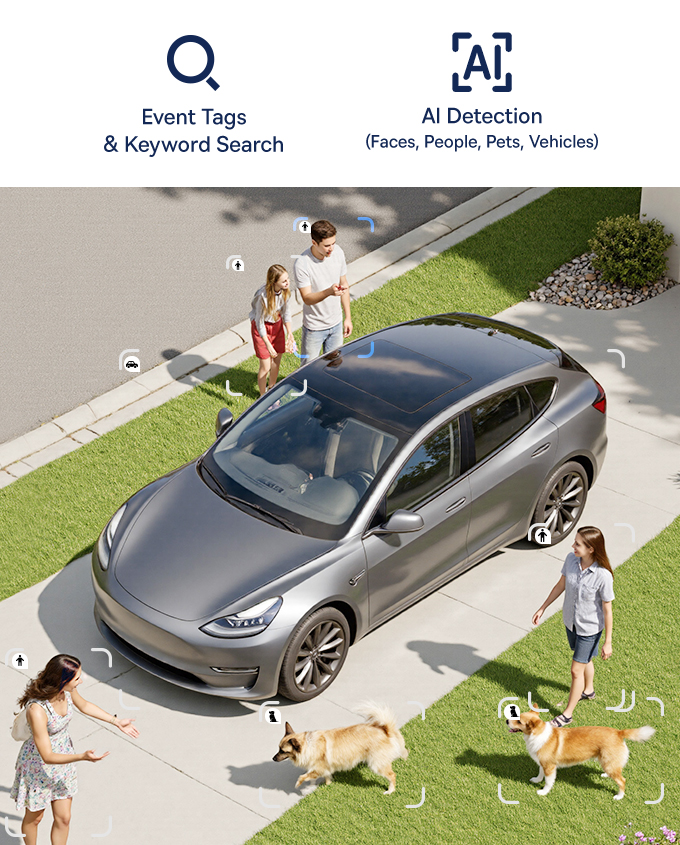 X1 Pro는 AI를 이용하여 얼굴, 사람, 반려동물, 차량 등 대상을 정확히 감지하여 오경보를 줄이고 의심스러운 활동에 대해서만 알림을 전송합니다.