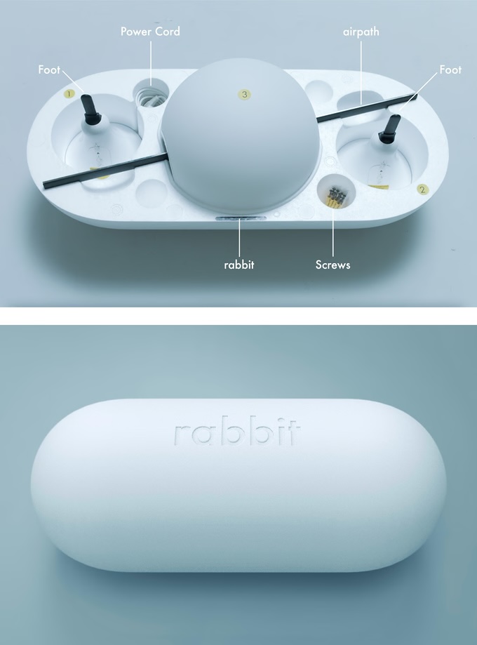 화이트래빗(White rabbit)은 피부 친화적인 탄성 고분자 소재 일체형으로 제작되어 부드럽고 가볍습니다. 탁월하게 균일하며 확산된 빛을 방출하도록 설계된 점이 특징입니다.