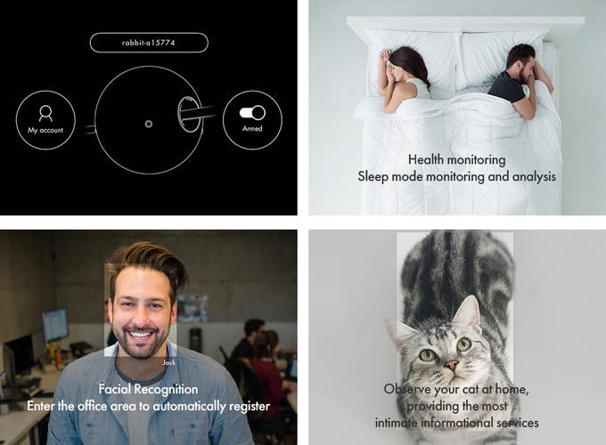 4개의 1080p 카메라를 탑재한 화이트래빗(White rabbit)은 완벽한 360° 파노라마 뷰를 제공하며, 앱을 통해 회의, 사교, 포괄적인 공간 모니터링을 위한 선명한 2K HD 라이브 VR 시청이 가능합니다.