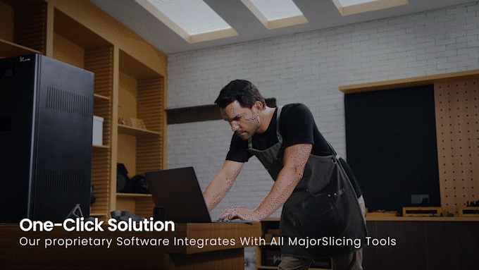 3MF, STL, OBJ 등 다양한 파일을 손쉽게 불러와 모델 방향 설정과 시간 및 소재 소모량을 즉시 예측할 수 있습니다. 특히 적재 밀도를 최적화하는 패킹 기능을 통해 단 한 번의 출력만으로 수백 개의 최종 부품을 효율적으로 양산합니다.