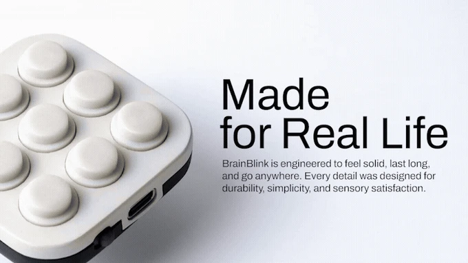 브레인블링크(BrainBlink)는 스마트폰으로 잃어버린 '집중력'을 단 1분의 사용으로 회복하는 휴대용 두뇌 트레이닝 기기입니다. 정밀한 기계식 버튼과 저지연 LED 시스템을 탑재하여 손끝으로 느끼는 즉각적인 반응과 타격감이 특징이며, 8가지 인지 강화 게임을 통해 몰입과 기억력을 훈련합니다. 오프라인 모드 뿐 아니라 온라인으로 전 세계 유저와 실력을 겨룰 수도 있습니다.