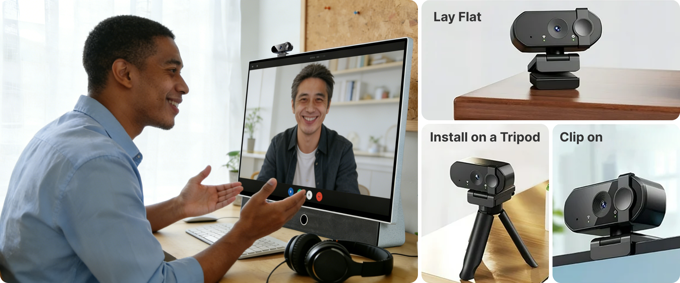 프라이버시 커버와 3가지 거치 모드를 지원하는 선택형 2K HD 웹캠은 추가 옵션으로 함께 구매가 가능합니다. 전문적인 화상 회의부터 개인적인 영상 통화까지 최적의 환경을 제공합니다.