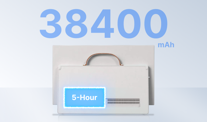 모비뷰(MobiView)에 내장된 38,400mAh 대용량 배터리를 내장하여 최대 5시간 동안 끊김 없이 영화를 감상할 수 있습니다. 전원 연결 없이도 영화 두 편을 연속 시청하거나 여유로운 오후의 음악 감상이 가능하며, 선의 제약에서 완전히 벗어난 진정한 무선 엔터테인먼트의 자유를 선사합니다.