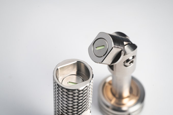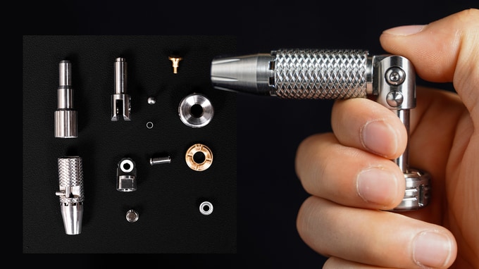 모든 부품을 티타늄과 황동으로 개별 CNC 가공 후 기계적으로 정밀 결합하여, 유격 없는 강력한 토크 전달력을 확보했습니다. 이를 통해 매끄럽고 명확한 클릭감은 물론, 마모 걱정 없는 반영구적인 내구성과 신뢰할 수 있는 구동 성능을 동시에 제공합니다.