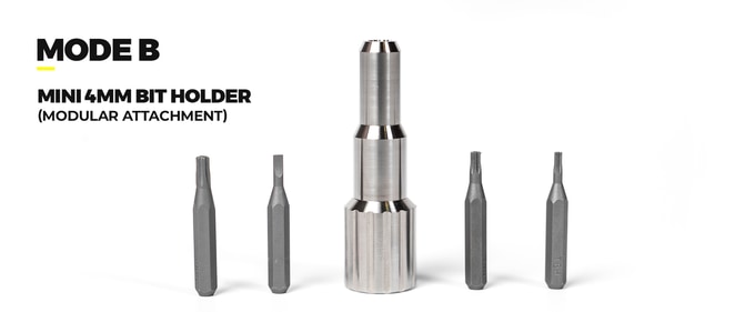안경, 시계, 소형 전자제품 등 정밀 기기의 수리를 위해 설계된 4mm 모듈은 토크보다 세밀한 제어를 지원합니다. 라쳇을 사용하지 않을 수 있도록 의도적이고 직관적인 설계를 통해 미세 하드웨어 작업 시 파손 위험을 줄이고 손끝 감각으로 섬세한 조작이 가능합니다.