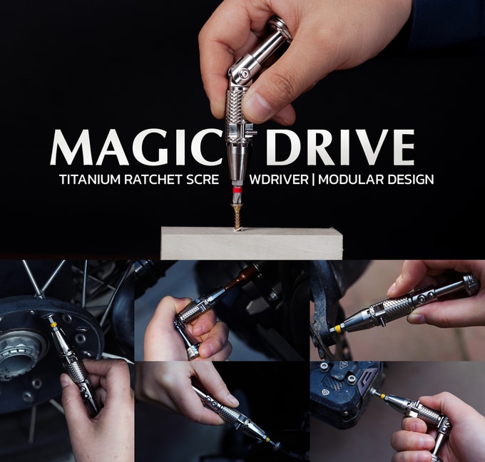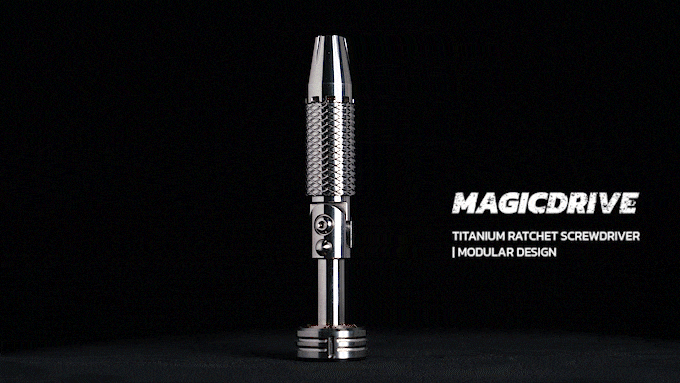 매직드라이브(MAGICDRIVE)는 Grade 5 티타늄을 CNC로 정밀 가공한 프리미엄 라쳇(Ratchet) 드라이버입니다. 3단계 각도 조절 시스템과 7.9Nm의 강력한 토크, 표준 1/4" 및 4mm 비트가 호환되는 모듈형 설계를 갖춰 볼트나 너트를 빠르게 조일 수 있습니다. 저소음 스피너와 트리튬 슬롯을 결합하여 드라이버의 도구적인 기능과 기계적인 예술성 및 사용하는 즐거움도 제공합니다.