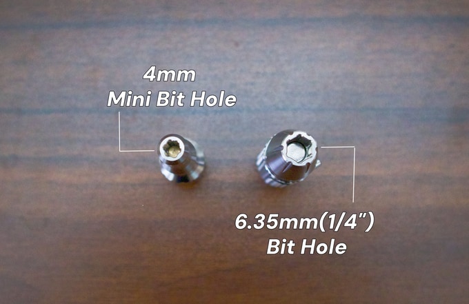 표준 1/4" (6.35mm) 육각 비트 홀더를 채택하여 시중의 십자, 별형 비트는 물론 연장봉과 소켓 어댑터 등 다양한 액세서리와 완벽히 호환됩니다.