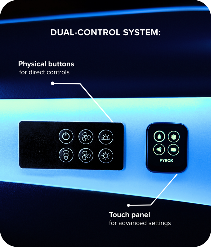 파이록스(Pyrox)는 직관적인 물리 버튼과 상세 설정이 가능한 터치 패널로 구성된 이중 제어 시스템을 제공합니다.