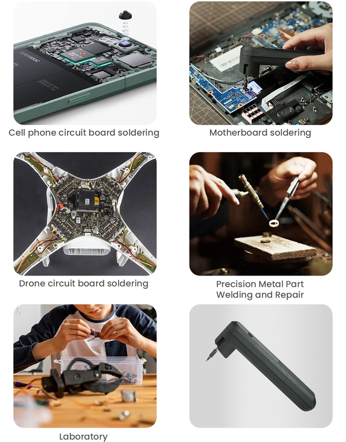 전원을 연결하지 않고, 전용 앱 연동을 통해 장소에 구애받지 않고 어떤 전자 기기든 한층 더 세밀하고 정교하게 납땜할 수 있는 수준 높은 정밀한 납땜이 가능합니다.