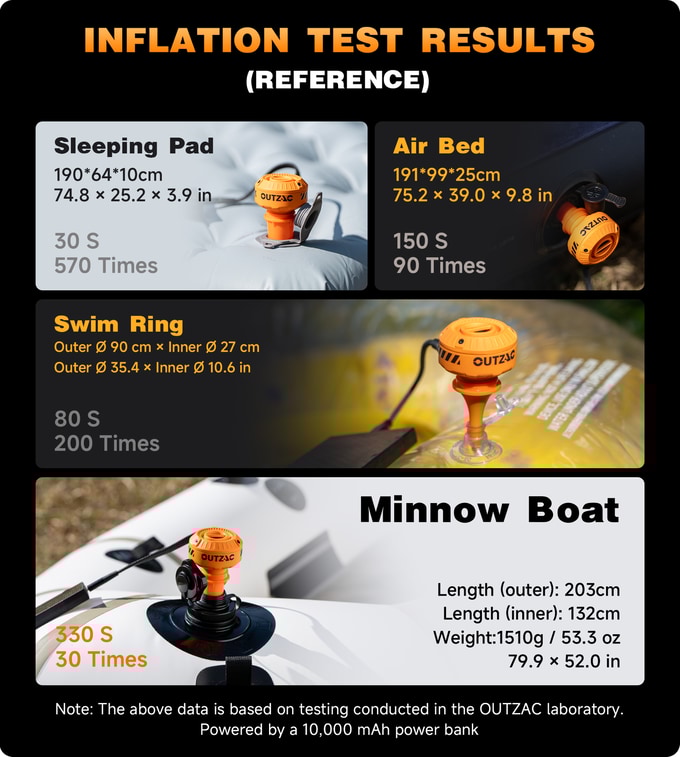 무거운 물체나 사람이 에어 매트에 올라가 있어도 피코펌프(PICO PUMP)는 5kPa의 실효 압력을 제공합니다. 75kg 성인이 누운 상태에서도 멈춤 없이 공기를 밀어 넣어, 수동 보충 없이도 매트를 끝까지 단단하고 완벽하게 만드는 강력한 성능을 발휘합니다.