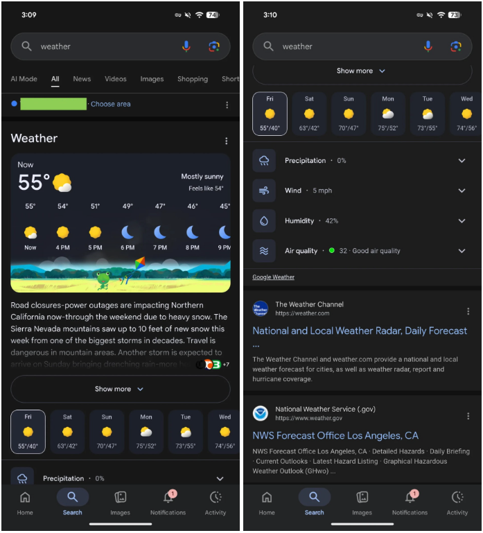 구글은 두 가지 날씨 경험을 별도로 유지하는 대신, 검색 기반의 단일 경험으로 통합하는 방향을 선택한 것으로 보입니다.