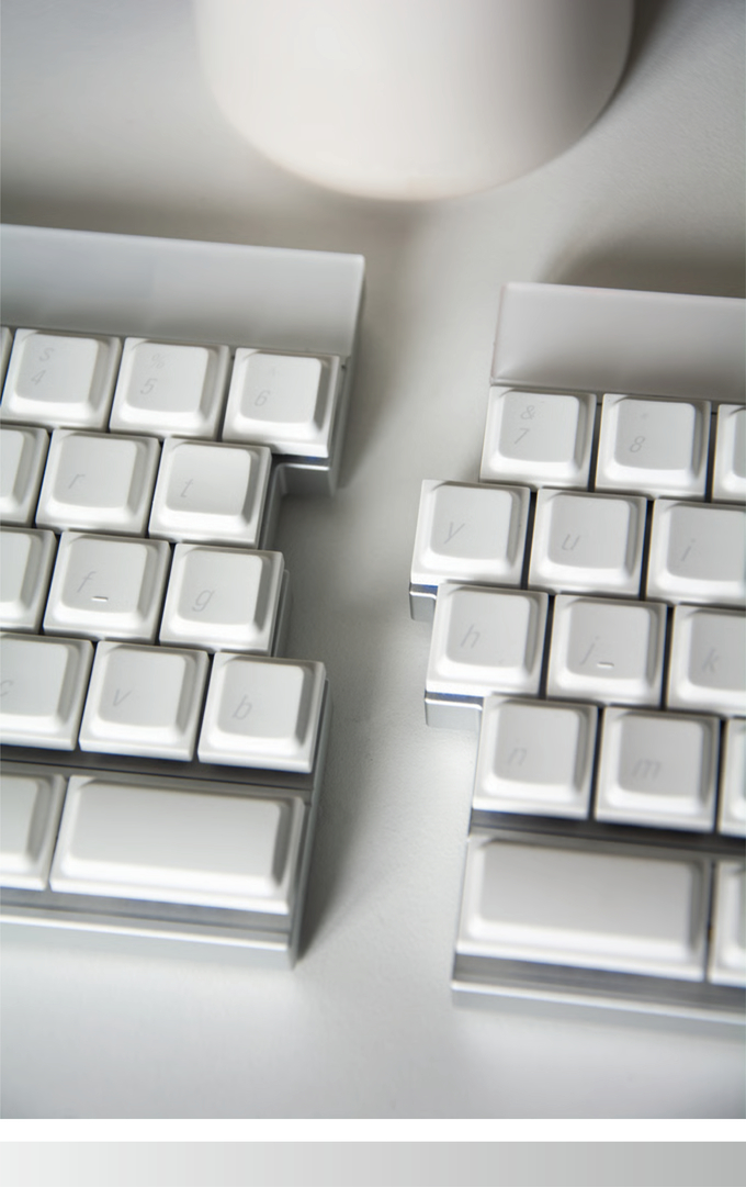 기계식 키보드는 양손을 좁은 간격에 고정한 채 반복 타이핑을 하게 되어 손목이 꺾이고 어깨가 긴장되기 쉬우며, 오랜 시간 사용 시에 근육 피로와 관절 부담이 누적되어 피로가 발생합니다. 장시간 타이핑으로 인한 손목·어깨 부담을 줄이기 위해 등장한 '스플릿 키보드(Split Keyboard)'는 자연스러운 손 위치를 유지해 인체공학적 편안함과 피로 감소, 작업 효율 향상에 도움이 됩니다.