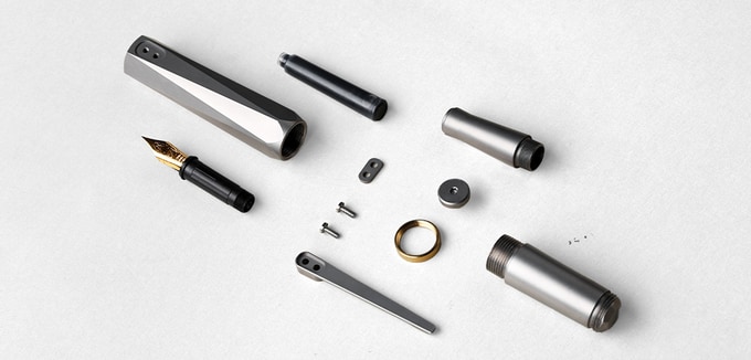 티타늄을 직접 깎아 만든 나사산과 정밀하게 맞물리는 결합 구조는 평생 지속되는 필기구 입니다.