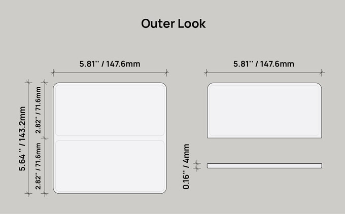 헤이폴드 미니(HEYfold Mini)의 심플한 전면 커버에는 자신만의 정체성과 스타일을 투영하여 디자인할 수 있습니다. 사용자에게 무한한 개인화의 자유를 제공합니다.