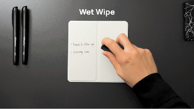 헤이폴드 미니(HEYfold Mini)에 작성된 메모는 건성 및 습식 지우기가 가능하며, 단 몇 초 만에 흔적 없이 완벽하게 지워져서 다시 재사용할 수 있게 설계 되었습니다.