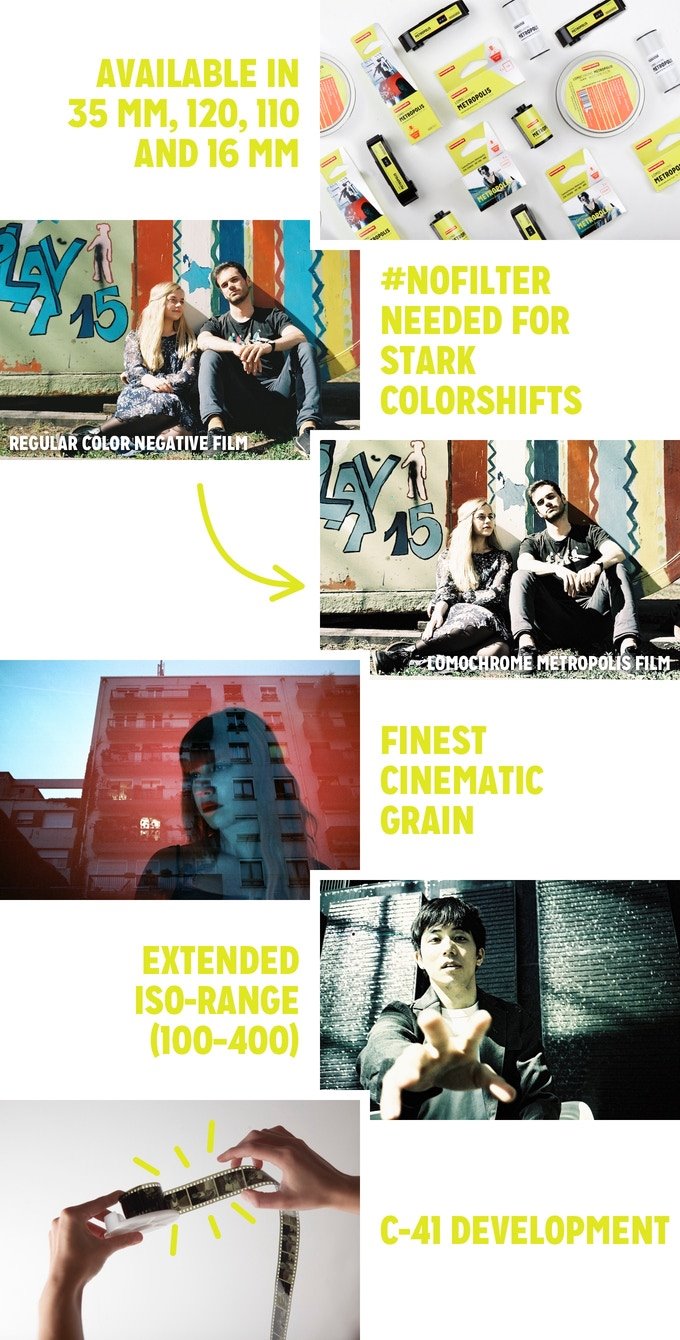 Let’s build Metropolis together! The first new color negative film in over 5 years. Available in 35 mm, 120, 110 and 16 mm.