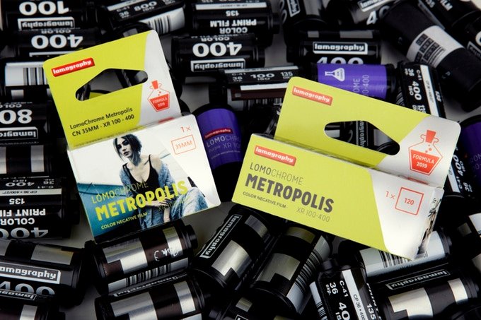 로모(Lomo) 메트로폴리스(Metropolis) 컬러 네거티브 필름 시리즈는 35mm, 120 (중간 포맷), 110 (포켓 필름) 및 16mm (영화 필름)으로 구성되어 있습니다.