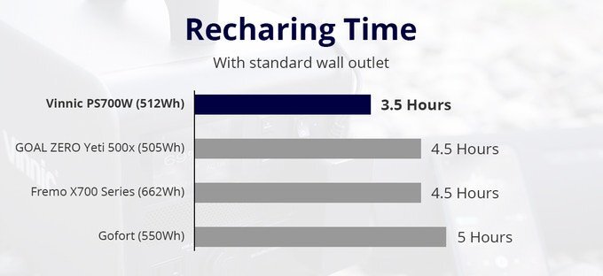 일반적인 리튬 이온은 고속충전이 계속 될수록 성능이 저하되고 충전시간도 길어지만, 비닉(Vinnic) 파워스테이션 4000주기 동안 충전 성능은 80% 유지되며, 충전 시간도 약 3.5시간으로 동일 합니다.